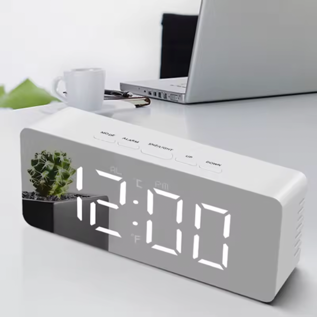 Tenha mais controle sobre o seu tempo com este Despertador Espelho Digital LED, que une praticidade, design elegante e funções essenciais para sua rotina. Com visor espelhado, sensor de temperatura, brilho ajustável e alarme com modo soneca, ele é ideal para quem busca funcionalidade sem complicação — perfeito para o quarto, escritório ou mesa de cabeceira.
