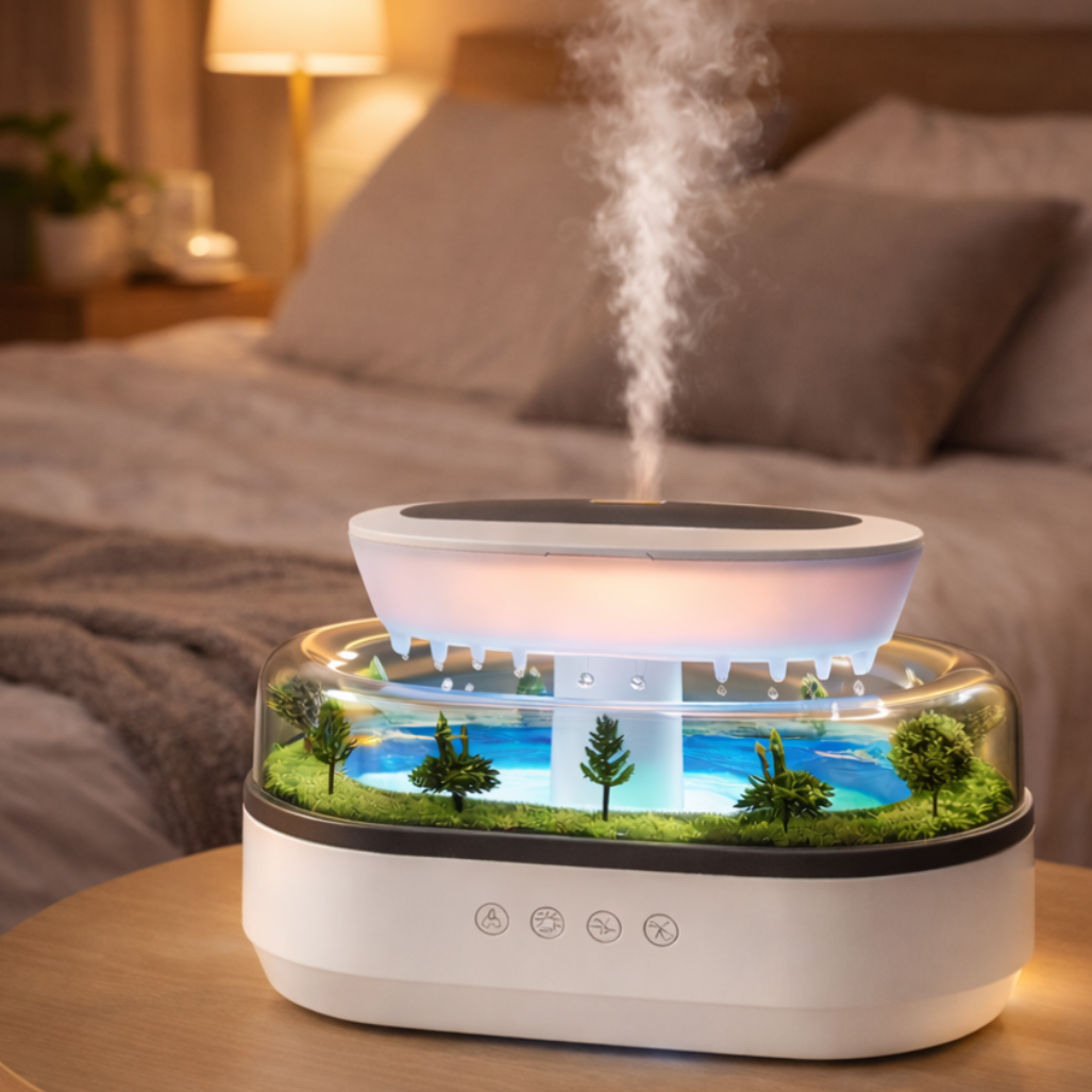 Transforme o ambiente em um refúgio de tranquilidade. O Difusor Floresta Serena combina aromaterapia, som relaxante de gotas de chuva e luz suave para criar o clima ideal para descansar, relaxar ou dormir melhor.
